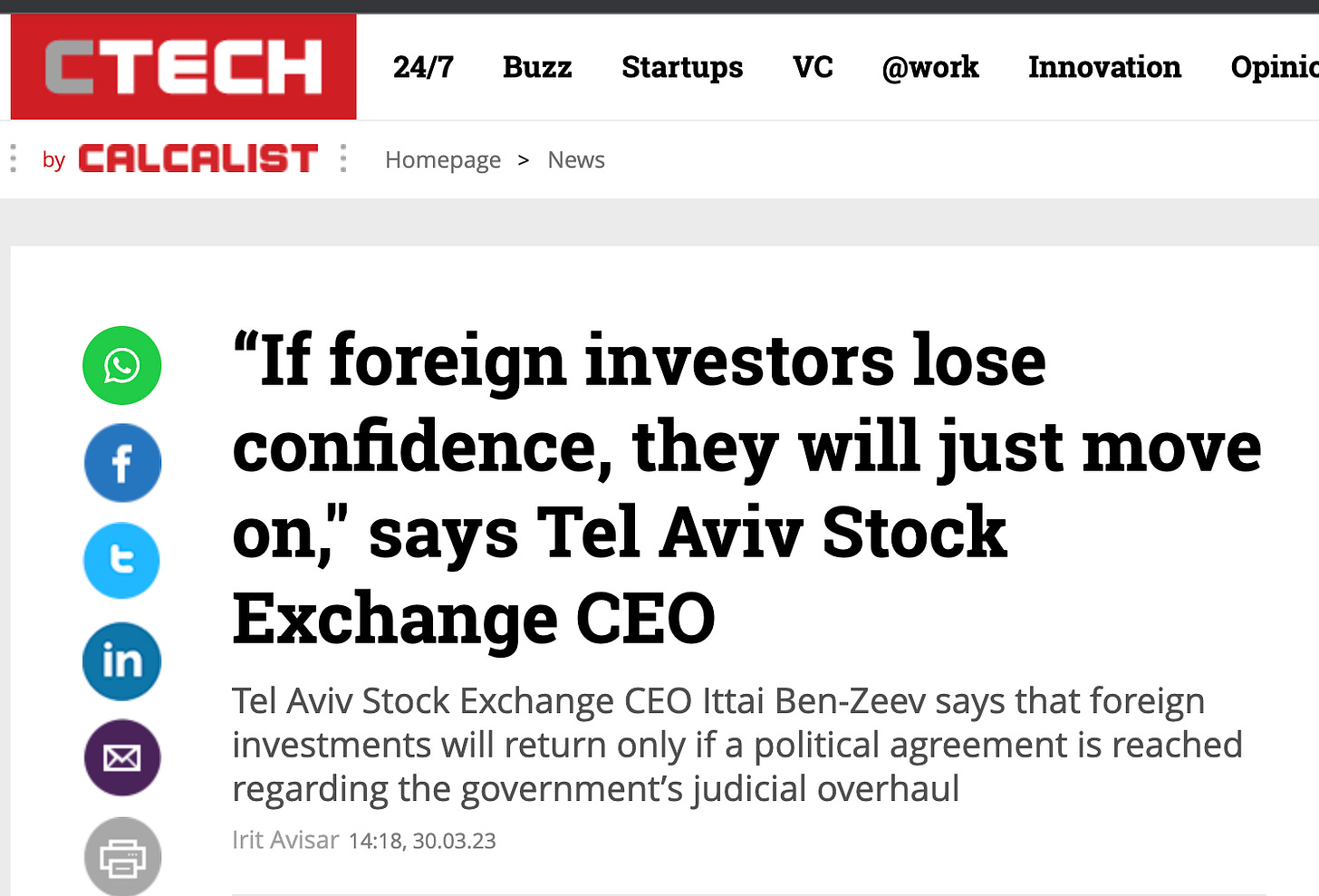 Q: Will you still attract foreign capital? Will foreign markets be open to Israeli companies?